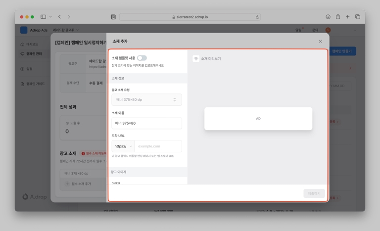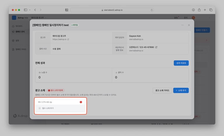 광고 소재 추가 후 소재 승인이 완료되면 광고 소재 노출 가능한 상태가 돼요.
