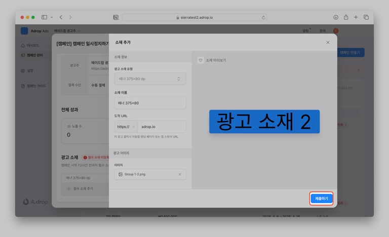 소재 추가가 완료되면 ‘제출하기’를 선택해주세요.