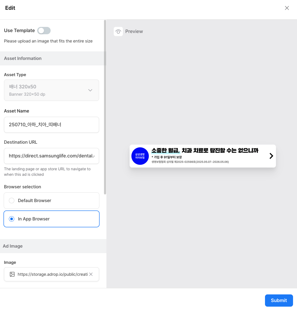 5. In the **"Asset Information"** section of the creative registration menu, you can choose the desired **browser**.\