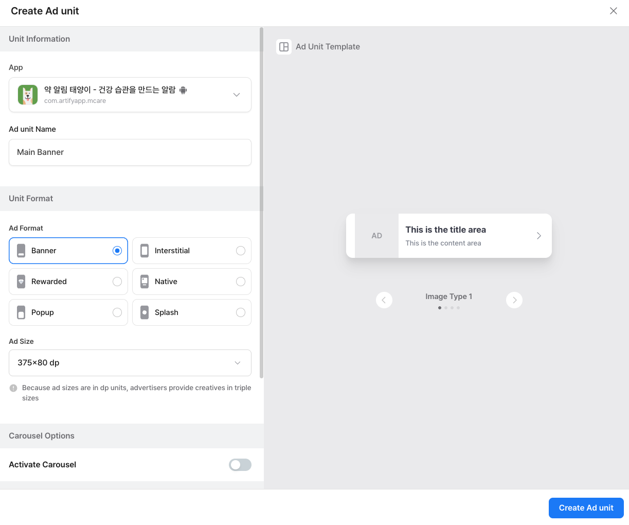 7. **When you’re done, click Create Ad Unit at the bottom right.**