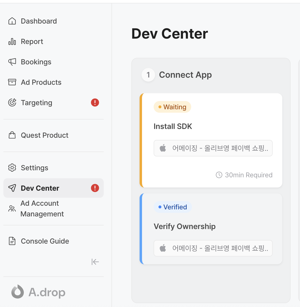 Once verified, your app is ready to link with the Adrop SDK.